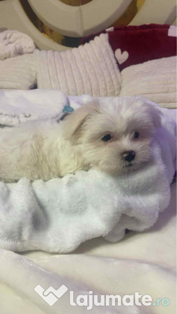 De vânzare , cățel Bichon , 6 săptămâni , cu , carnet de sănătate , 2 vaccinuri , are pătuț , șampon , jucării