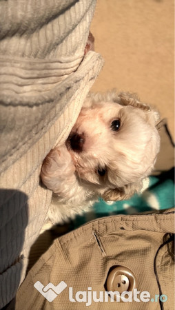 cățelușa este bichon maltez, rasă pură, sănătoasă și jucăușă