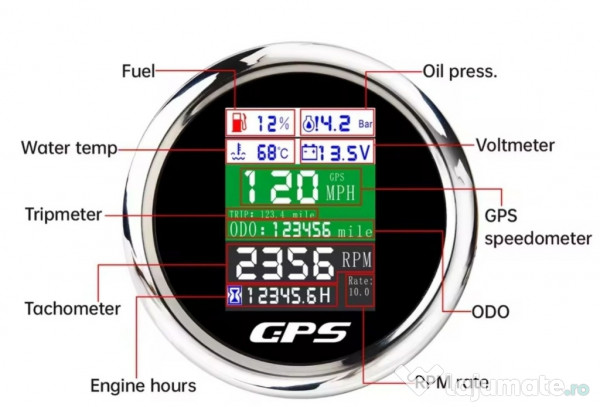 Ceas bord universal - poate fi folosit la motociclete, cross-uri, atv-uri, barci etc.