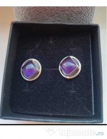 Cercei eleganți din argint cu ametist, noi, cu etichetă. O bijuterie rafinată pentru a completa orice ținută.