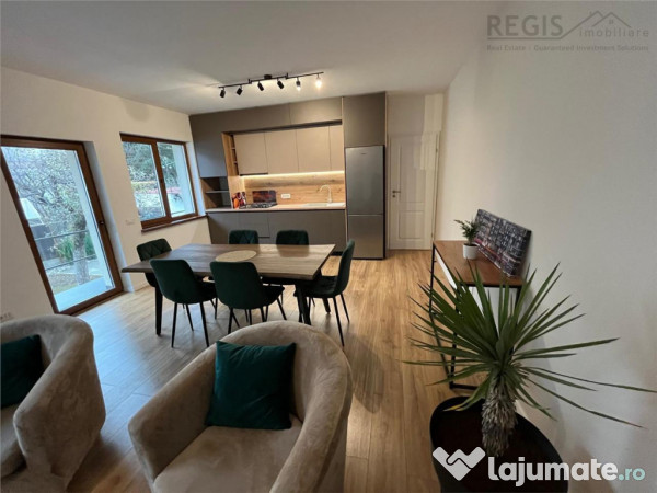 Livingul bucataria au impreuna 30 mp, fiind utilat cu aragaz, frigider, masina de spalat vase si de spalat rufe. Locatia va ofera un ambient de poveste si in acelasi timp ambient modern cu tot ce ati putea avea nevoie pentru confortul familiei dvs. In plus curtea are gazon de iarba, si in felul acesta va bucurati de aer curat.