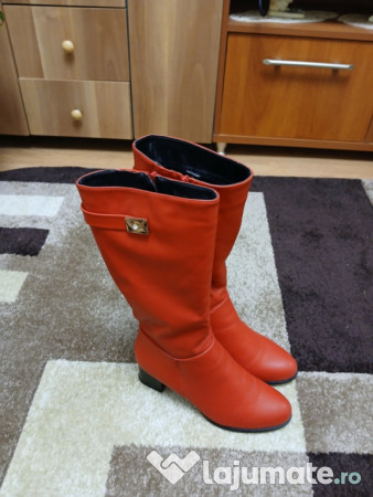 de vânzare cizme de damă de culoare roșie cu blană pe interior cu fermoar un pic de toc nr 39 bune și la 38 , purtate o singură dată