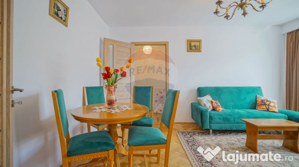 Apartamentul este situat la etajul 4/4 al unui imobil liniștit și bine întreținut, oferindu-vă o priveliște panoramică asupra orașului. Spațiul generos include două holuri, un living luminos și primitor, un balcon, o baie elegantă, un dormitor confortabil și o bucătărie modernă, complet utilată cu mașină de spălat vase, aragaz, cuptor și espressor. De asemenea, apartamentul dispune de o debara, oferindu-vă spațiu adițional pentru depozitare.