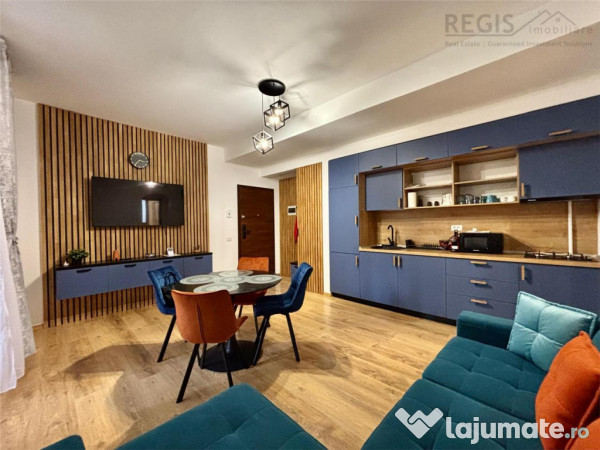 Se vinde complet mobilat si utilat, cu dotari moderne, fiind gata pentru mutare imediata sau pentru inchiriere in regim hotelier.