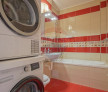 1 baie cu cada, masina de spalat si uscator de rufe