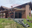 Casa îmbină confortul modern cu farmecul tradițional, având elemente rustice și naturale precum cărămidă aparentă, piatră naturală și grinzi masive de lemn, care creează o atmosferă caldă și autentică.