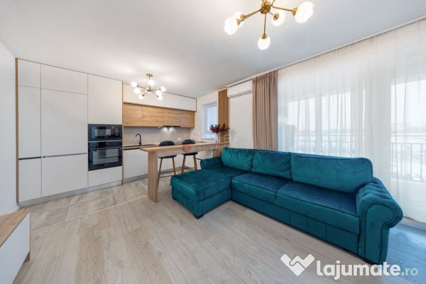 - Living-ul, care are o suprafata generoasa, detine suprafata vitrata mare, este mobilat modern si are deschidere spre balcon;