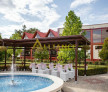Terasa restaurantului Miorita este un spatiu primitor, inconjurat de mult spatiu verde, cel mai potrivit loc pentru relaxare in sezonul cald.