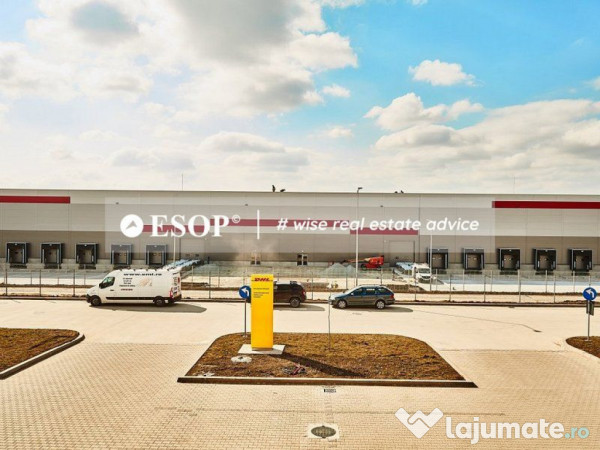 Inaltime libera 10m, dispunere stalpi de sustinere 12x24m, rezistenta podelei 5t/mp, sistem de prevenire si stingere a incendiilor, sistem de sprinklere, platforma tir, drive-in