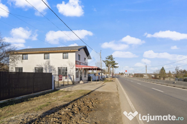 *Clădirea principală P+M cu deschidere la DN1, cu o suprafață construită de 251 mp și o suprafață utilă de 238,1 mp. Parterul are destinație comercială iar mansarda, fiind la roșu, necesită finalizare, compartimentare și izolare pod.