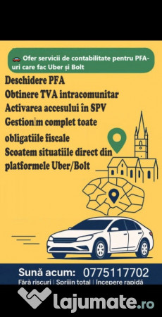 Expert contabil Contabilitate si salarizare transport alternativ Uber si Bolt. Ne transmiteti datele de logare pe platforma. Singurele documente ce trebuiesc aduse la contabilitate sunt bonurile de benzina sau orice alt bon si extrasele bancare (lunar). Restul le avem din efactura si platforme. Ne ocupam de transmitere facturi in efactura cu semnatura noastra digitala.