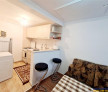 Camera de zi dispune de o zona de dinning, dar si de o masa moderna tip bar, bucatariea este complet echipata, iar baia se prezinta cu cabina de dus.
