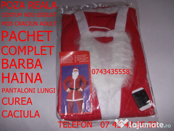 LA PRET REAL SI FIX 29 LEI VINDEM COSTUMUL COMPLET MOS CRACIUN PENTRU ADULTI, ORICE MARIME. CU HAINA, BARBA, PANTALONI, CACIULA, CUREA.