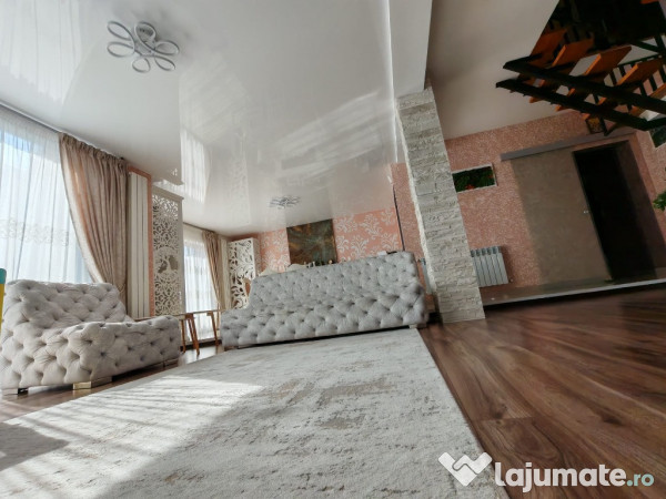 CASA ESTE AMPLASATA PE UN TEREN DE 420MP CU O DESCHIDERE DE 18 ML, FINALIZATA IN 2018 SI LOCUITA DIN 2019. CASA SE AFLA IN UNA DIN CELE MAI BUNE ZONE, CU STRADA ASFALTATA SI TROTUARE, INCONJURATA DOAR DE CASE NOI. POARTA ACCES AUTO AUTOMATA ACTIONATA DIN TELECOMANDA. CURTE AMENAJATA COMPLET CU BRAZI DECORATIVI, TRANDAFIRI PE PICIOR SI ALTE PLANTE DECORATIVE. SISTEM DE IRIGARE AUTOMAT. CURTEA PAVATA CU TRAVERTIN GARDURI ZIDITE DIN BCA SI DECORATIVA SILICONATA FOISOR 23 MP AMENAJAT COMPLET CU VITRINA DE BAUTURI, GRATAR. PROPRIETATEA ARE REGIM DE INALTIME P+1 CU PLACA TURNATA INTRE NIVELE CAT SI SUPERIOR. LA PARTER REGASIM GARAJ CU ACCES DIN CURTE PRIN USA ACTIONATA ELECTRIC DAR SI DIN CASA. BAIE LIVING GENEROS CU SPATIU DE LUAT MASA DELIMITAT, SEMINEU, SPATIU VITRAT PE INTREG PERETELE. BUCATARIE SEPARAT HOL LA ETAJ REGASIM 3 DORMITOARE BAIE TERASA BALCON HOL CASA ESTE COMPLET MOBILATA SI UTILATA, MOBILA MOBEXPERT SI ARDUDANA. MAI MULTE DETALII VA PREZENTAM LA VIZIONARE .