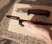 - Protecție: Are o gardă pronunțată care previne alunecarea degetelor spre lamă în timpul utilizării intense.