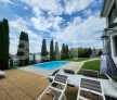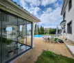 Bucătărie de vară absolut de vis, cu geamuri mari și acces direct către piscină – ideală pentru petreceri sau cine relaxante