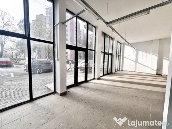 Situat intr-un bloc nou, cu inaltime interioara de 3,80 m, spatiul dispune de 4 vitrine generoase, 2 intrari, grup sanitar propriu si posibilitatea amenajarii unei terase in fata magazinului.