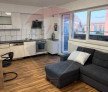 Se vinde exact cum este prezentat in poze, mobilat si utilat cu combina frigorifica, cuptorul electric, plita inductie si masina de spalat vase fiind incorporate in mobilierul de bucatarie, hota, un aparat aer conditionat si TV. Exista multiple spatii de depozitare a imbracamintei si incaltamintei atat pe hol cat si in dormitoare. Dormitorul este complet mobilat – pat tip dormitor 1.6x2 m, masuta de machiaj, noptiera, TV, iar biroul este dotat cu mobilier adaptat – birouri de lucru, scaune ergonomice si spatii de depozitare, acesta putandu-se transforma in dormitor la nevoie.