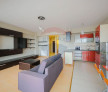 Bucătăria este dotată cu toate electrocasnicele necesare pentru confortul zilnic: plită, frigider, baia este dotată cu obiecte sanitare noi și mașină de spălat haine.