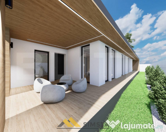 Va propunem spre vanzare o casa moderna pe un singur nivel care beneficiaza de finisaje de lux si este amplasata pe un teren generos de 500 mp. Aceasta proprietate este conceputa pentru a satisface toate nevoile unei familii fiind construita cu materiale de cea mai inalta calitate si este compartimentata astfel: 1 hol de acces, living cu bucatarie open space, 3 dormitoare din care unul cu baie proprie si dresing, 1 baie principala, 1 spatiu de depozitare, terasa acoperita, garaj acoperit cu statie de incarcare pentru masina electrica. Casa este racordata la reteaua electrica, la apa si canalizare iar reteaua de gaz este in curs de extindere. Aceasta casa este izolata cu polistiren de 15 cm EPS 100, geamuri cu sticla tripla si profil cu 7 camere, incalzire in pardoseala, intrerupatoare smart cu tach, trotuare perimetrale placate cu gresie iar terenul este imprejmuit cu gard 3 parti.Va asteptam la vizionare.