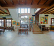 Etajul deschis oferă o perspectivă amplă asupra parterului, păstrând coerența estetică a ansamblului prin materiale naturale și accente arhitecturale rafinate. Bucătăria profesională, amplă și excelent organizată, este complet echipată cu utilaje de top din inox, linii separate pentru preparate calde, reci și patiserie, camere frigorifice, zonă de spălare și spații de depozitare dimensionate conform normelor actuale. Concepția și dotările permit derularea unui flux complex de producție culinară la standarde înalte, fiind pregătită pentru operare imediată, fără investiții suplimentare.