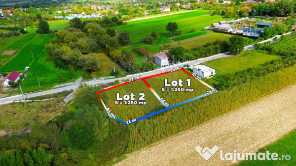 Sunt disponibile 2 parcele a cate 1.250 mp cu deschidere de 28-27 ml.