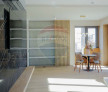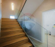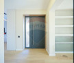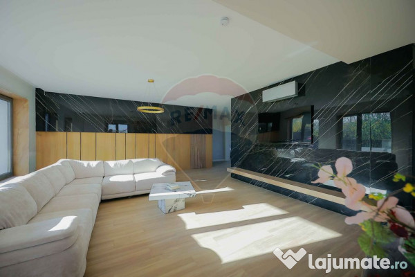 Interiorul impresionează prin finisaje premium și elemente realizate special: ușile din lemn masiv executate la comandă, mobilierul din lemn cu iluminare LED activată la deschidere, riflajele interioare din lemn masiv cu LED încorporat, paturile din camere tapițate integral, cu sistem LED personalizat, toate acestea contribuind la unicitatea locuinței. Băile sunt echipate cu instalații sanitare Ideal Standard, iar mobilierul lor, realizat custom made din MDF cu blat ceramic, se potrivește perfect cu gresia și faianța Marazzi folosită.