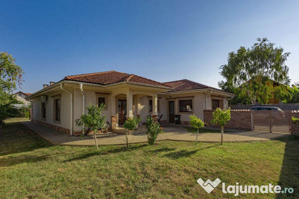 Pentru iubitorii de lux si liniste va propunem spre vanzare cu comision 0% o casa deosebita, cu o suprafata de 226 mp utili + garaj încălzit 40 mp si 1000mp teren, in localitatea SanMihaiu Roman, la doar 30 de minute de centrul orasului Timisoara.