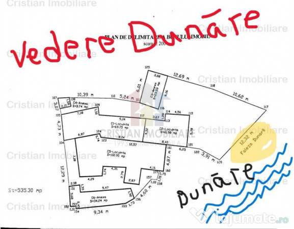 DESCHIDERE 12m la FALEZA DUNARII , Teren 535mp Constructie batraneasca din caramida
