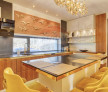 Bucătăria este o piesă de design contemporan: linii curate, texturi calde, insulă centrală, vitrine iluminate și detalii fine, unde estetica și funcționalitatea se completează perfect. Este un spațiu în care fiecare element are un rol, fiecare finisaj spune o poveste.