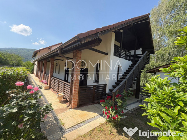DOMINA IMOBILIARE vă propune spre vânzare un domeniu aparte, situat în pădurea Bumbești-Jiu, undeva la poalele munților, într-un loc unde liniștea și verdele naturii se împletesc firesc cu confortul unei proprietăți amenajate cu suflet. Este locul unde răcoarea pădurii, mirosul pământului și aerul curat de munte se transformă într-un refugiu de poveste, cu un farmec ce îți îmbie fiecare zi.