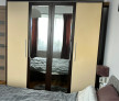 Mobilier dormitor cu pat, somiera(160/200 cm), 2 noptiere, sifonier in 4 usi si comoda.
