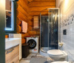 Casa secundara are 80 mp suprafata construita desfasurata fiind potrivita pentru oaspeti sau familie extinsa si include living open space cu bucatarie, baie, beci si camera tehnica pentru centrala, terasa acoperita cu bucatarie de vara si loc de luat masa.