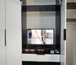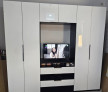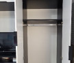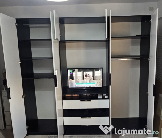 Compartimentare: spaţiu mare pentru umeraşe, polite, sertare late (~91 cm), dulap lateral (~79 cm)