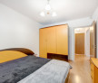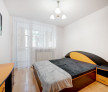 Dormitorul matrimonial are pat dublu cu saltea, dulap pentru haine, noptiere si comoda. Din dormitorul mare se face accesul catre balconul ( logie) inchis.