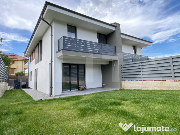 Se preda la stadiul de semifinisat cu centrala termica, peretii gletuiti, sapa autonivelanta, geamuri termopan, incalzire in pardoseala la parter si etaj, instalatii trase la pozitii, si centrala termica proprie.