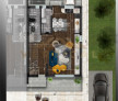 La interior, de cum pasim în cochetul imobil, putem observa compartimentarea excelenta – bucataria, baia ,living-ul si iesirea pe terasa;