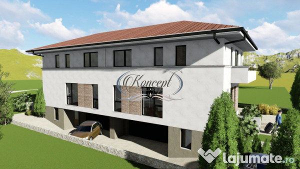 Koncept Imobiliare propune spre vanzare un duplex situat intr-un cartier nou de case din Dambul Rotund, intr-o zona retrasa si linistita, ferita de agitatia urbana si de traficul intens. Locatia ofera intimitate, acces facil catre oras si o panorama deosebita asupra Clujului, beneficiind de o orientare sud-estica ce aduce lumina naturala pe tot parcursul zilei. Proprietatea are o suprafata utila de 195 mp si este amplasata pe un teren de 205 mp, cu optiunea unei variante extinse de 445 mp. Compartimentarea eficienta include 5 camere, 3 bai, bucatarie, hol, 2 balcoane cu suprafata totala de 22,3 mp, garaj pentru 2 masini, spatiu tehnic si pivnita. Exista flexibilitate in recompartimentare si adaptare in functie de nevoile viitorului proprietar. Constructia respecta standardele NZEB (Nearly Energy Zero Buildings) si este realizata cu structura solida din beton individual pentru fiecare unitate, caramida de 25 cm si strat antifonant intre pereti. Finisajele includ sapa, pereti gletuiti si tencuiti, ferestre cu 3 foi de sticla si feronerie Rehau. Instalatiile electrice si sanitare sunt trase pe pozitii, iar incalzirea este asigurata prin centrala termica proprie, cu posibilitatea de instalare a unei pompe de caldura. Panourile fotovoltaice contribuie la eficienta energetica. Imobilul este ideal pentru o familie care cauta o locuinta moderna, cu potential de personalizare, inclusiv pentru sistemele smart, supraveghere, alarma sau management energetic. Pozitia si configuratia proprietatii ofera un echilibru excelent intre confort, eficienta si intimitate. Proprietatea beneficiaza de un pret competitiv raportat la calitatea constructiei si dotarile oferite. Actele sunt verificate si validate de agentie. Pentru informatii complete, programarea unei vizionari sau pentru a afla oferta noastra completa va stam la dispozitie telefonic, prin e-mail sau la sediul agentiei noastre, pe str. Aviator Badescu, nr. 19, Cluj-Napoca.