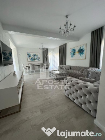 APOSTU ESTATE va propune spre vanzare o jumatate de duplex de lux, despartita prin garaj de celalata jumatate, 3 camere, 3 bai, zona Dumbravita