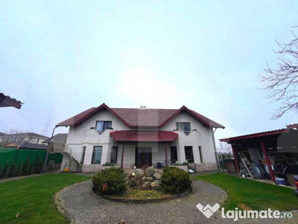 Casa este de 418 mp cu o curte frumos amenajata in fata si un spatiu de relxare in spate cu iesire de pe terasa.