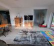 Parter: bucătărie + living open-space, birou, baie, cameră tehnică, spațiu de depozitare separat prin ușă din sticlă securizată.