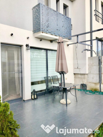 Beneficiaza de centrala termica proprie, poarta la intrare in curte, geamuri termopan cu tamplarie PVC. Dispune de un spatiu frumos amenajat cu gazon, 60 mp de teren(gazon) si 1 garaj.