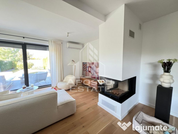 Proprietatea este compusa din 4 camere spatioase si luminoase, 2 bai complet echipate, dressing generos si 2 terase perfecte pentru relaxare in aer liber. Livingul amplu este dotat cu semineu functional, adaugand un plus de caldura si eleganta atmosferei.