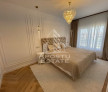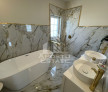 - Baie etaj complet echipata: mobilier alb cu doua lavoare si baterii, oglinda aurie, cada freestanding cu robinet dedicat, iluminat suspendat