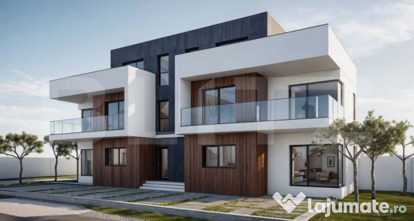Imobilul are termen de finalizare cu CF în luna ianuarie 2025 și se predă în stadiul semifinisat cu materiale Baumit, șapă autonivelantă, tâmplărie PVC cu geam termopan, încălzire în pardoseală, tencuială decorativă Wieka și fațada principală placată cu piatră naturală. Imobilul se predă dotat cu panouri solare de 6 KW și curte amenajată și delimitată pentru fiecare duplex.