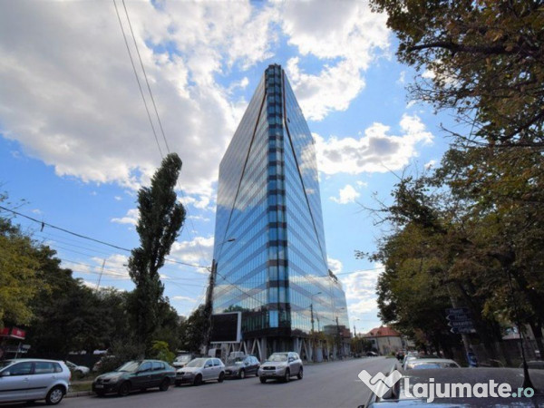 Informatii imobil: , cortina de sticla, ferestre fixe, min 2,7m pina la tavan, (28.00m inaltime), podea inaltata, mocheta, restaurant/cafenea, nr. lifturi - 6, lift de marfa, paza 24h, CCTV