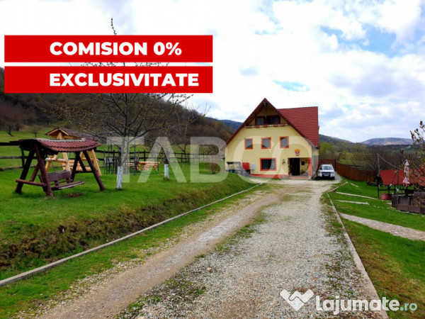 Pensiunea cu o capacitate de 24 de persoane este functionala in momentul de fata pentru primirea clientilor si dispune de toate imbunatatirile necesare pentru desfasurarea activitatii de cazare cum ar fi: panouri solare pentru incalzirea apei, generator, parchet laminat, gresie, faianta, 1 centrala pe lemne cu calorifere din otel, geamuri termopan cu tamplarie din lemn de cires, usi din lemn la interior, mobilier si electrocasnice.