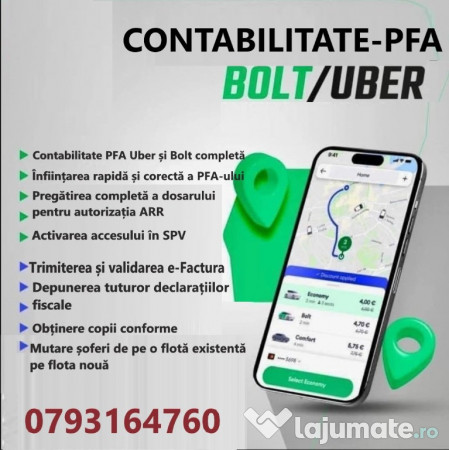 Asistență pentru deschiderea sau mutarea conturilor Uber/Bolt (inclusiv conturile de flotă ale PFA-ului)
