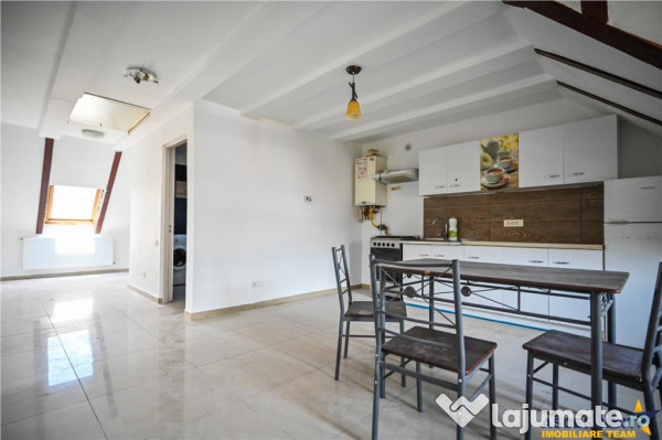 Mansarda: apartament 2 camere, bucatarie, baie terasa generoasa