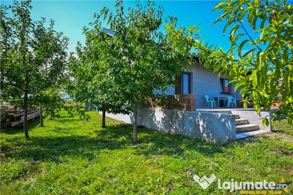 Imobilul este structurat in trei camere spatioase, un salon generos cu lumina naturala abundenta, bucatarie cu spatiu optim pentru zona de luat masa, precum si doua bai, fiecare pregatita pentru dotari moderne. Deasupra casei se afla un pod mansardabil cu o suprafata utila de 70 mp, care poate fi amenajat in functie de viziunea noilor proprietari fie ca spatiu de locuit suplimentar, birou, sala de hobby sau depozitare. La exterior, rezidenta dispune de o terasa de 30 mp, ideala pentru relaxare, socializare sau mese in aer liber.